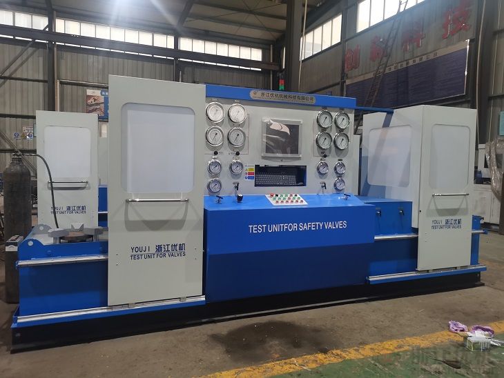 JLA型安全閥性能校驗(yàn)臺(tái)是我公司科技人員按照國(guó)家GB/T1 3927—92和ZBJl6006—90有關(guān)標(biāo)準(zhǔn)要求參照國(guó)外同類產(chǎn)品之優(yōu)點(diǎn),結(jié)合我們多年生產(chǎn)閥門檢測(cè)設(shè)備技術(shù)經(jīng)驗(yàn)基礎(chǔ)上,自行成功研制國(guó)內(nèi)首臺(tái)JLA型安全閥性能測(cè)試。JLA型閥門液壓試壓機(jī)是我公司在積累多年生產(chǎn)閥門檢測(cè)設(shè)備技術(shù)的基礎(chǔ)上按照國(guó)家GB/T1 3927 — 92《通用閥門壓力試驗(yàn)》和ZBJl6006-90《閥門的試驗(yàn)與檢測(cè)》的標(biāo)準(zhǔn)規(guī)范要求,是公司自主研發(fā)的安全閥試驗(yàn)臺(tái)并擁有國(guó)家技術(shù)專利知識(shí)產(chǎn)權(quán),專利號(hào)ZL2016 1 0240324.1。該校驗(yàn)臺(tái)省去了原傳統(tǒng)的大竄容積的高壓畜氣罐,只需配備普通的0.6MPa空壓氣泵氣源。經(jīng)過本機(jī)會(huì)自動(dòng)進(jìn)行調(diào)節(jié)0.6-32.0MPa氣體介質(zhì)試驗(yàn)壓力。適用于公稱通徑DNl 5~300mm安全閥的整定、啟閉、回座壓